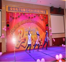 從2013年12初行政人事就已開始計劃籌備,安排所有的流程。大至大合唱,小至各部門節目,一切都呈現出一片尾牙氣氛,直至尾牙,也許大家會在排練過程中相互碰撞,相互埋怨,但是始終不變的是,相互鼓勵,相互幫助,一心都指向尾牙,給安東人創造出一臺不一樣的尾牙晚宴。